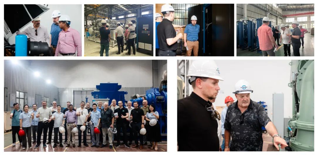 最令人動容的是,客人們參觀開山某車間在用的160kW無油螺桿空氣壓縮機時,在狹小、悶熱的空壓機房客人們流連忘返,他們幾乎人人都濕透了衣裳。聽著機器發出的柔和聲響,見多識廣的客人們流露出復雜的表情,是震驚、難以置信;是驚喜,終于尋覓到如愿的好產品;是欣慰,不虛此行,今后有了更多、更好的選擇。這些在壓縮機行業經營多年的專業人士一致認為:開山產品無論從哪個方面評判都已經完全具備全球一線品牌的特質。