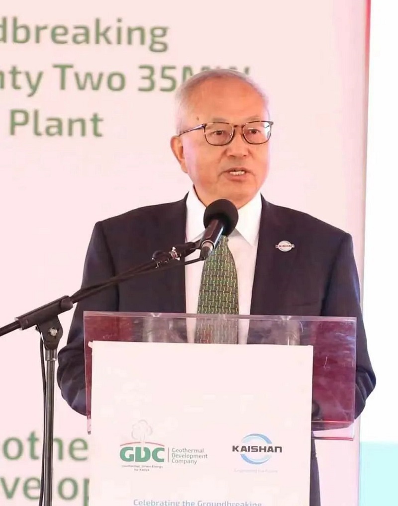 We will not stop here in this project. As Kaishan is the leader in the world on the hydrogen and process gas compressors, and as we share the same vision as Your Excellency on the green industrialization and renewable energies, we will definitely participate in the Africa green industrialization initiated by Your Excellency, and we are honored to have the opportunity to build the first green fertilizer plant in Africa. We will not only install more geothermal power plants, but also use the geothermal electricity to generate the green hydrogen and to produce ammonia from the green hydrogen. Kenya’s agriculture will benefit from the green ammonia, and it can also be used as a fuel to replace diesel, to reduce the carbon dioxide emission and to meet Kenya’s net zero initiative. With Your Excellency’s support, Kaishan will produce Kenya’s first kilogram of the green fertilizer in 24 months from the notice to proceed. Your Excellency, we know it is not easy to achieve this target, and we definitely need Your Excellency and your team’s full support. With your unwavering commitment and support, both our teams together will accomplish this great project and create a new landmark of the green industrialization in Africa.