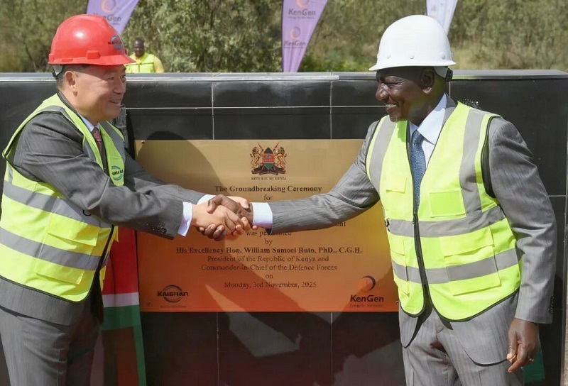 上午九點,肯尼亞共和國總統魯托閣下搭乘的直升飛機降落在綠色化肥廠建設工地,他與開山控股集團股份有限公司董事長曹克堅首先為項目揭牌,并親自開動挖掘機,為項目建設挖掘了第一鏟土,宣告了肯尼亞有史以來最大的工業項目開工建設。
