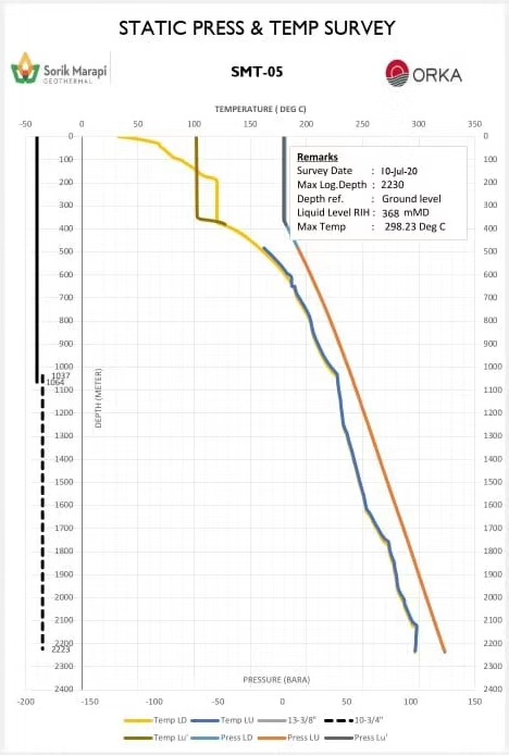 昨天,開山總公司收到印尼SMGP項目公司關(guān)于T平臺T-05井測試報告,在2230米處錄得資源層最高溫度達到298℃,之前錄得的最高資源溫度為A107井的278℃。